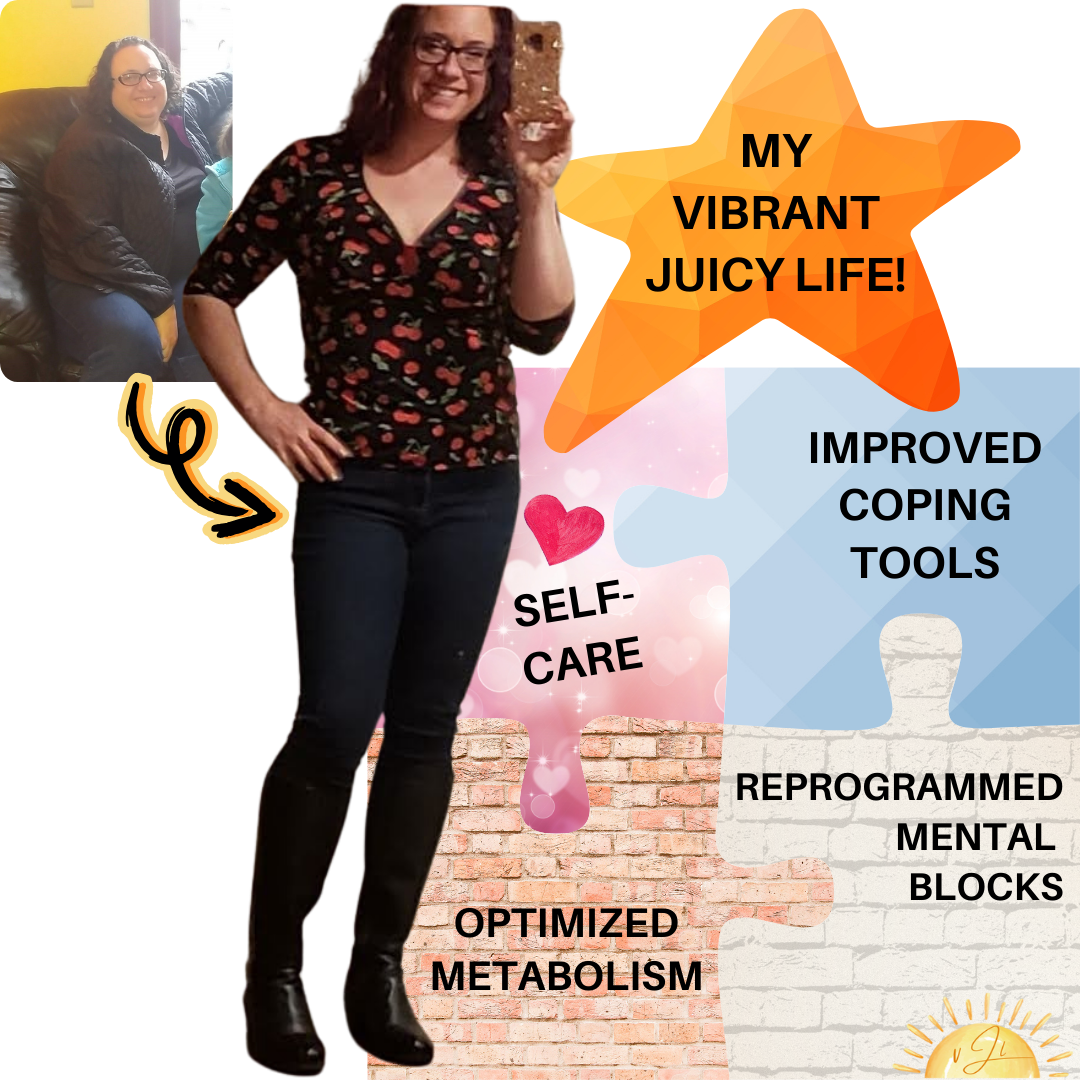 My own transformation includes going from size 22 to size 8 (landing at size 12). But the weight didn't change my life, it was everything else. Finding more self-worth, dealing with life in a way that didn't exhaust me, and having more energy and comfort. Now I help other women take control over food using nutritional biochemistry (body), subconscious reprogramming (mind), and self-love (heart) so they can feel better mentally and physically. Instead of diet and restriction, life gets richer!